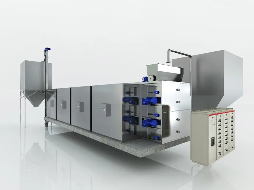 污泥干化處理設(shè)備的工作原理是對原生污泥濃縮后進行改進,接著泵入容壓彈性壓榨系統(tǒng)進行深度脫水處理,促使污泥含水率降到60%以下,最終實現(xiàn)污泥低費用、資源化利用的目標。